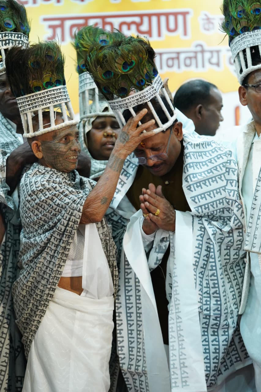 विशेष पिछड़ी जनजाति पहाड़ी कोरवा समाज के प्रतिनिधियों ने पारंपरिक वेशभूषा में मुख्यमंत्री से भेंट की। मुख्यमंत्री ने उनके क्षेत्रों में चल रहे विकास कार्यों की जानकारी ली और विशेष जनजातियों के सर्वांगीण विकास के प्रति सरकार की प्रतिबद्धता दोहराई।